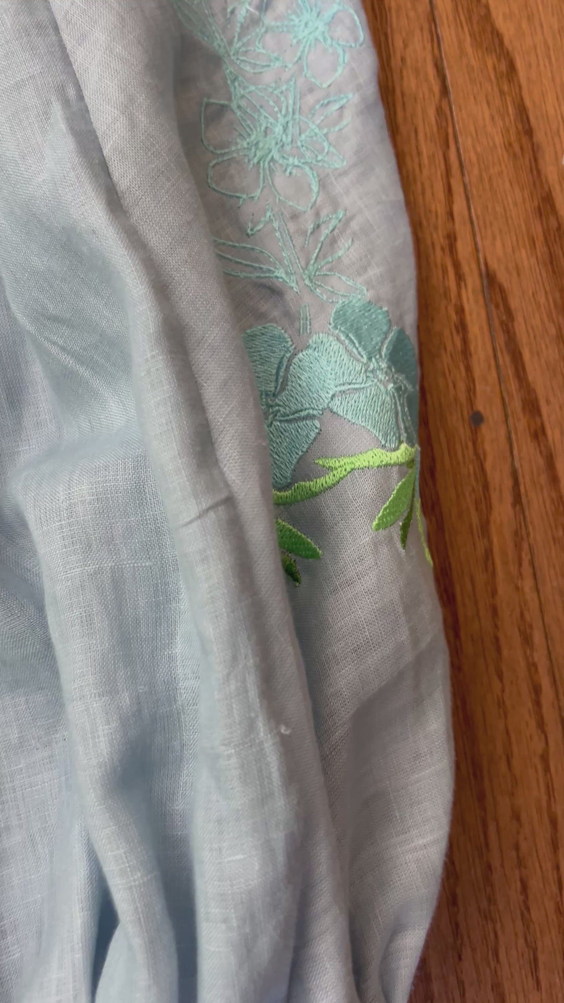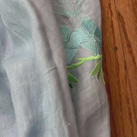 Indulge in the refined elegance of our Linen Embroidered Jogger, meticulously crafted from 100% linen, exuding a sense of effortless sophistication. Adorned with an exquisite periwinkle flower embroidery, this piece invites you to embrace the delicate beauty of nature. The inclusion of pockets enhances both its practicality and allure, making it a quintessential addition to your curated wardrobe, where comfort meets artistry.