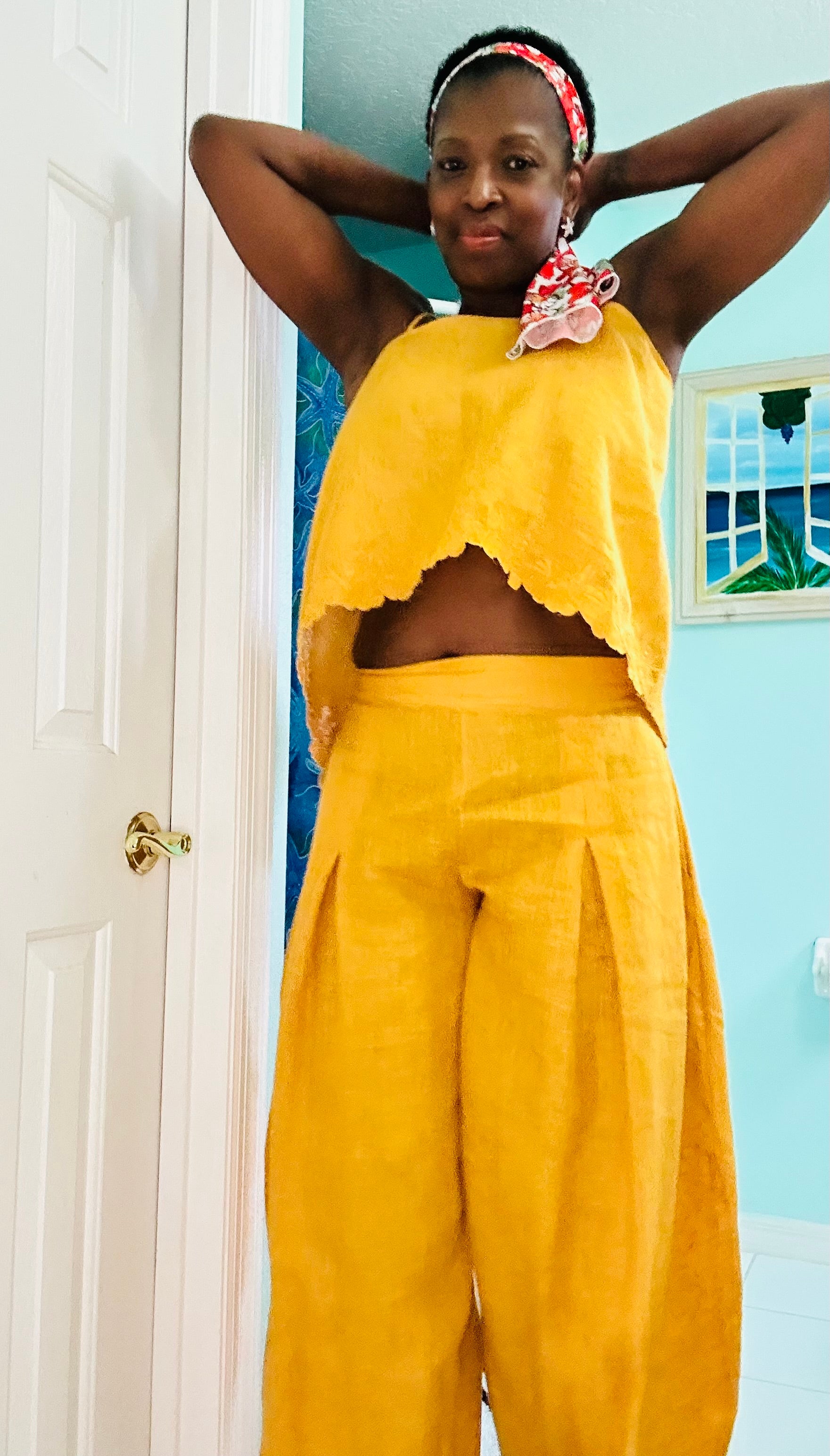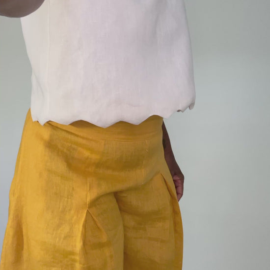Linen pleated wide leg pant