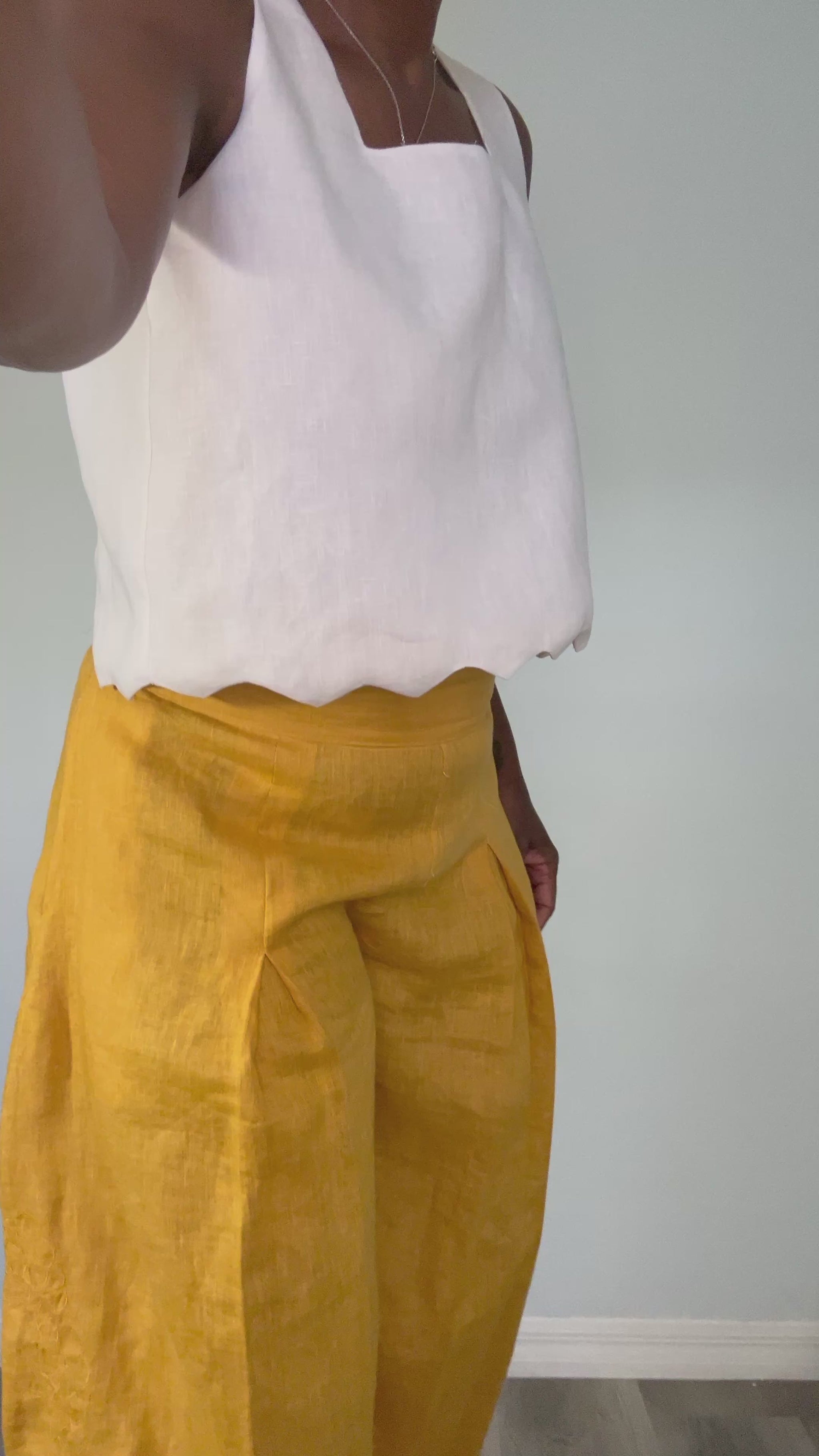 Introducing the Linen Pleated Wide Leg Pant, an exquisite embodiment of effortless elegance. Crafted from the finest 100% linen, these lightweight trousers drape gracefully, offering both comfort and sophistication. The thoughtfully designed pleats and discreet pockets evoke a sense of refinement, making them an essential addition to a discerning wardrobe.